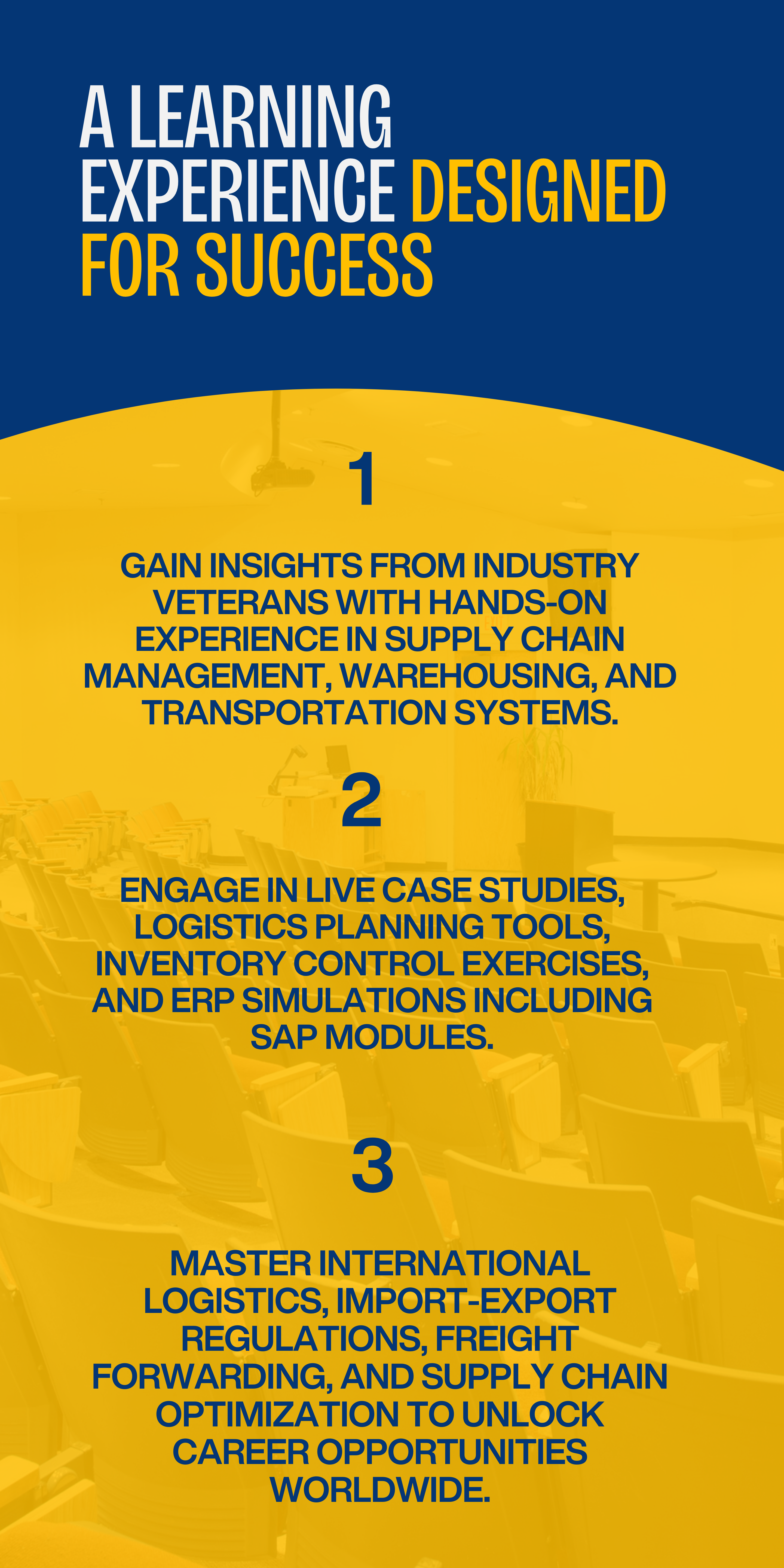 ✔ Expert Faculty & Mentorship – Learn from industry veterans and SAP-certified trainers who bring years of professional expertise in supply chain and logistics management.